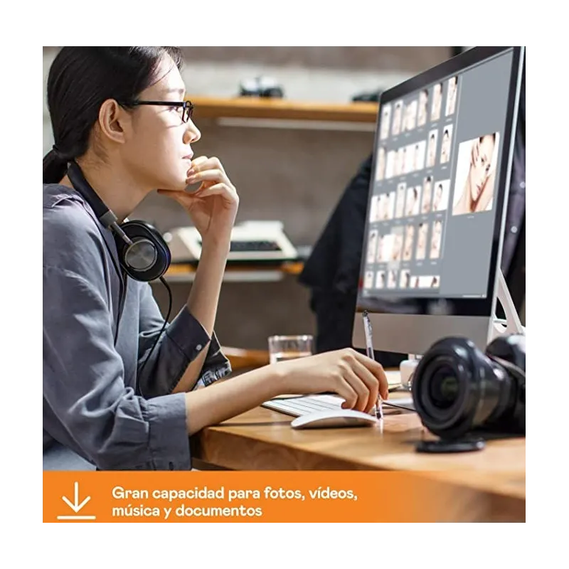 OBSERVA LA POTENCIA DE MY BOOK EN ACCIÓN: Nuestras vidas son muy dinámicas y generamos grandes cantidades de contenido digital. El disco de sobremesa My Book ofrece una gran capacidad de almacenamiento para que puedas realizar copias de seguridad con confianza de los archivos que conforman tu vida digital.