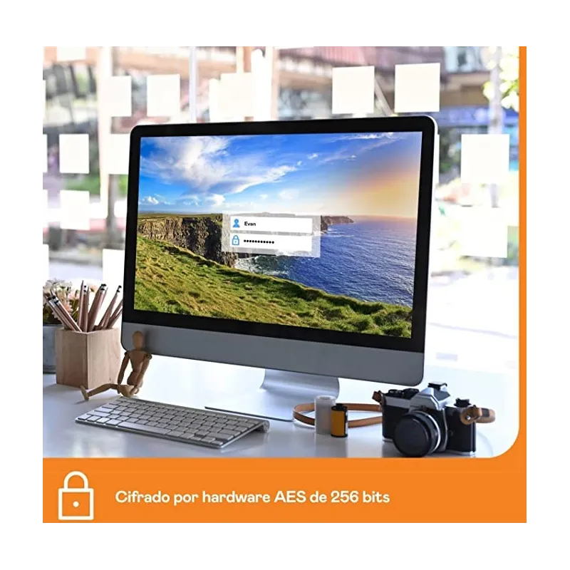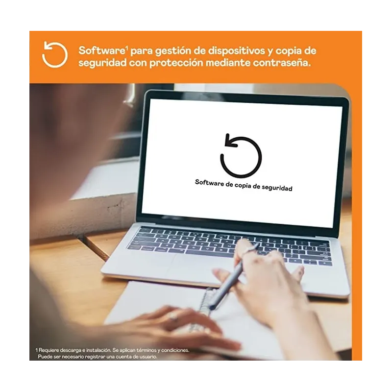PROTEGE TUS DATOS CON UNA CONTRASEÑA: Sabemos que tus archivos son importantes y personales, por eso te ofrecemos la posibilidad de cifrarlos con una contraseña que solo tú conozcas. Así, podrás evitar el acceso no autorizado a tu información y mantenerla a salvo de miradas indiscretas. Además, el disco duro cuenta con un software para la gestión de dispositivos, que te permite configurar el nivel de seguridad, el formato del disco, el nombre y el icono. También podrás programar copias de seguridad automáticas para que no pierdas ningún dato.