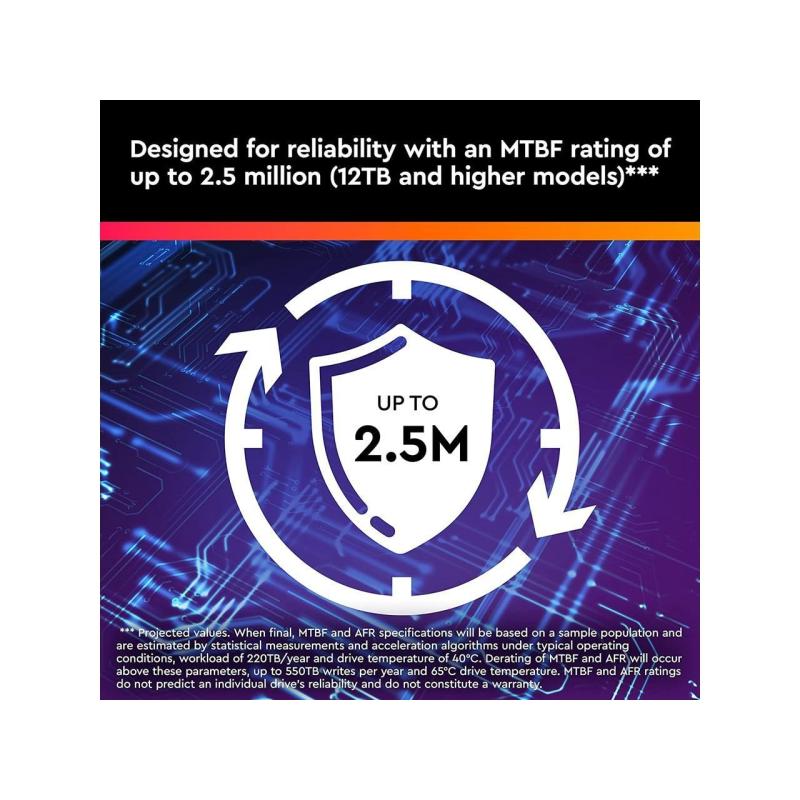 CAPACIDADES DE CARGA DE TRABAJO AVANZADA PARA SISTEMAS AVANZADOS: Estos discos fiables se han diseñado con un índice de carga de trabajo de hasta 550 TB al año3, para estar a la altura en cuanto a captura de datos y análisis de vídeo ininterrumpidos de los grabadores con IA avanzados, los dispositivos de análisis de vídeo y los servidores de análisis de aprendizaje profundo.