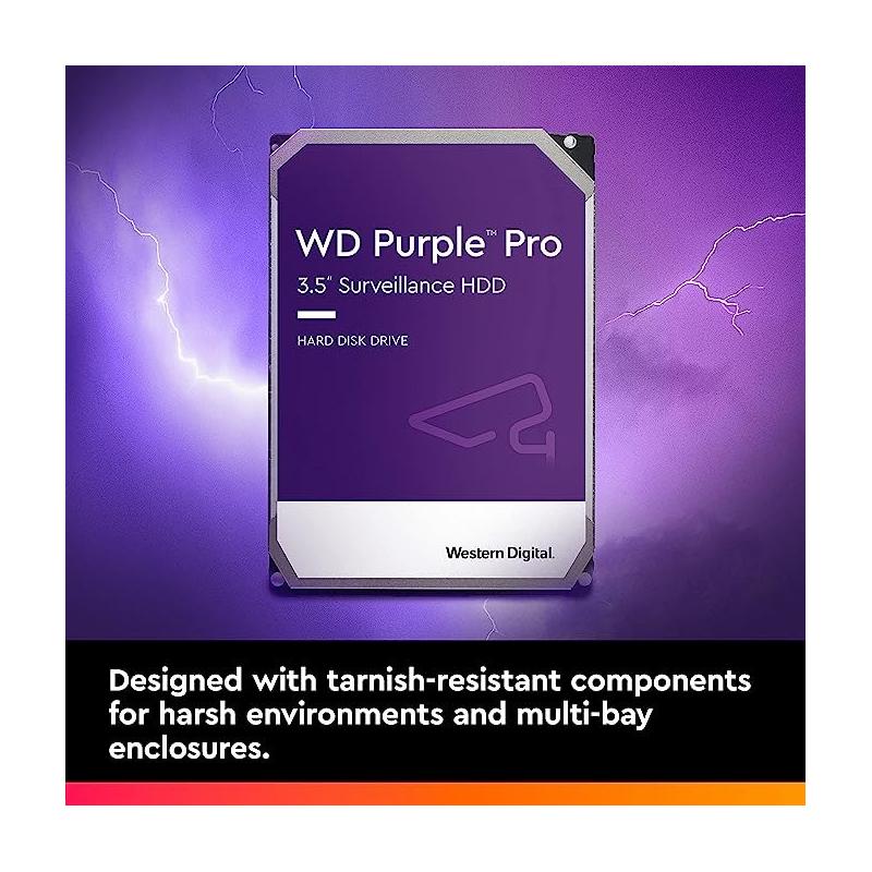DISEÑADO PARA UN FUNCIONAMIENTO FIABLE: Diseñado con un tiempo medio entre fallos (MTBF) de hasta 2,5 millones de horas4 y respaldado por una garantía limitada de 5 años, el disco duro WD Purple™ Pro también cuenta con componentes resistentes al desgaste y soporte multicompartimento completo, para permitir un funcionamiento fiable en sistemas de videovigilancia de gran escala.