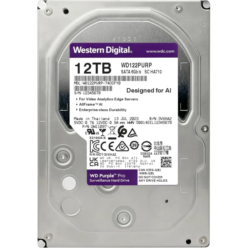 Western Digital Purple Pro WD122PURP 12TB Surveillance 3.5" SATA 3 256MB