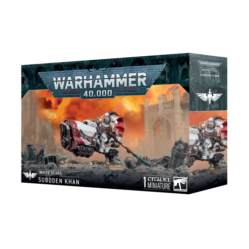 White Scars: Suboden Khan es una caja de miniatura de personaje diseñada para ejércitos de Marines Espaciales centrados en el capítulo White Scars. Ofrece una figura icónica que actúa como líder visible tanto en partidas de Warhammer 40,000 como en vitrinas de coleccionista, con un formato manejable para quienes amplían o inician una fuerza temática.