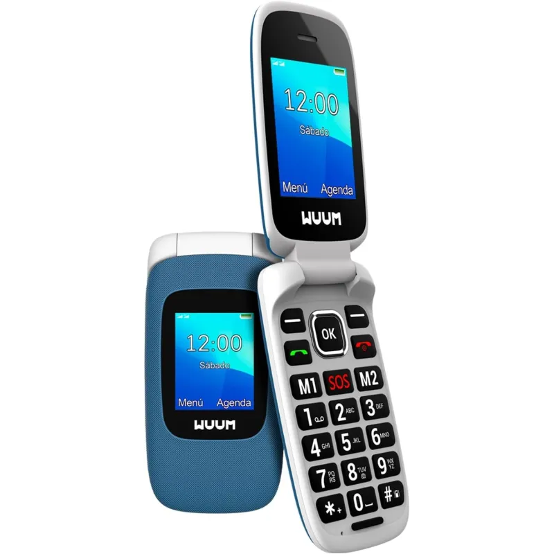 El WUUM CLAP prioriza llamadas y SMS en un formato “flip” que protege pantalla y teclado cuando está cerrado, útil para llevarlo encima sin pulsaciones accidentales.