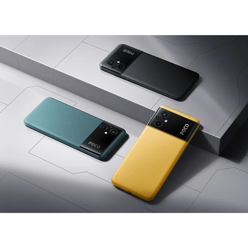 TEXTURA SIMILAR A LA PIEL, DISEÑO MODERNO: El diseño de borde plano en una sola pieza permite sostenerlo cómodamente. Su textura fina, similar al cuero, también es resistente a las manchas. Los materiales dobles de la cubierta posterior contrastan de forma pronunciada, lo que hace que la POCO M5 destaque.