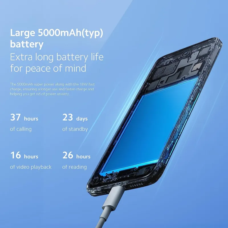 GRAN BATERÍA DE 5000 MAH (TYP) DURACIÓN EXTRALARGA DE LA BATERÍA PARA UNA MAYOR TRANQUILIDAD: La superpotencia de 5000 mAh y la carga rápida de 18 W garantizan un uso más prolongado y una carga más rápida, para que no te tengas que preocupar más por quedarte sin batería.