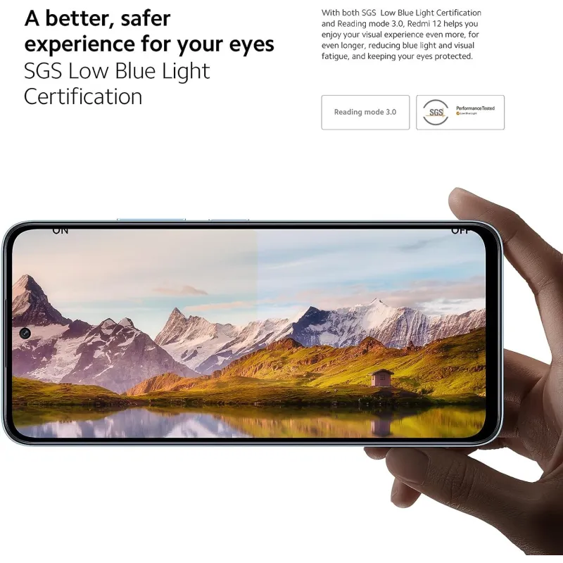 UNA EXPERIENCIA MEJOR Y MÁS SEGURA PARA TU VISTA: Con la certificación de luz azul reducida de SGS y Reading Mode 3.0, el Redmi 12 te ayuda a disfrutar aún más de tu experiencia visual durante más tiempo, ya que reduce la luz azul y la fatiga visual, y mantiene tus ojos protegidos. Certificación de luz azul reducida de SGS