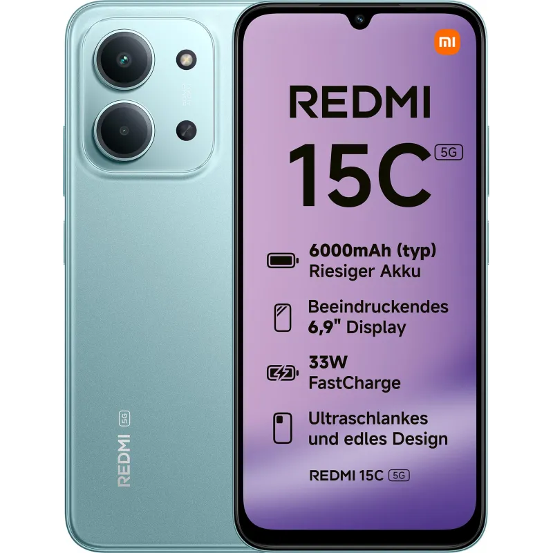Smartphone Xiaomi Redmi 15C 5G 4/128GB Verde con pantalla 6.9 pulgadas, batería 6000 mAh, procesador MediaTek y cámara trasera de 50 MP