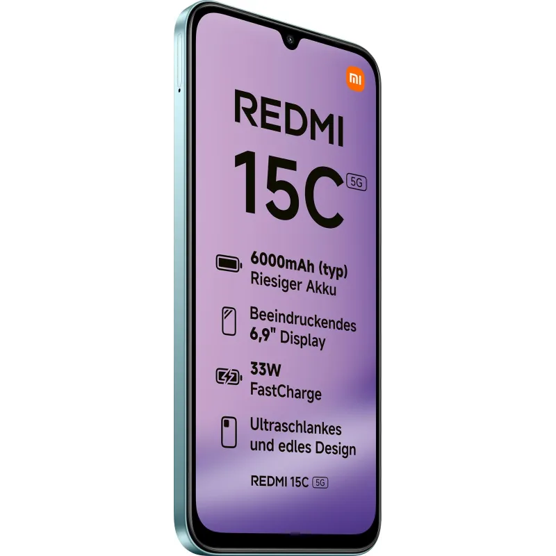 Este Smartphone Xiaomi Redmi 15C 5G 4/128GB Verde destaca también por su gran batería de 6000 mAh, que proporciona una autonomía prolongada para acompañarte durante todo el día sin preocupaciones. La carga rápida de hasta 33 W mediante USB tipo C permite recargar el dispositivo en menos tiempo, optimizando su uso diario. El diseño en color verde menta y su forma de barra le dan un aspecto moderno y elegante. Además, incorpora lector de huellas digitales, protección IP64 contra polvo y salpicaduras, y ranura para tarjetas MicroSD, ampliando su versatilidad. Con un peso de 211 g y un grosor de solo 8,2 mm, combina ergonomía y funcionalidad. Este dispositivo es perfecto para quienes buscan un smartphone completo, con una gran pantalla de 6.9 pulgadas y una potente batería de 6000 mAh que garantizan una experiencia equilibrada y duradera.