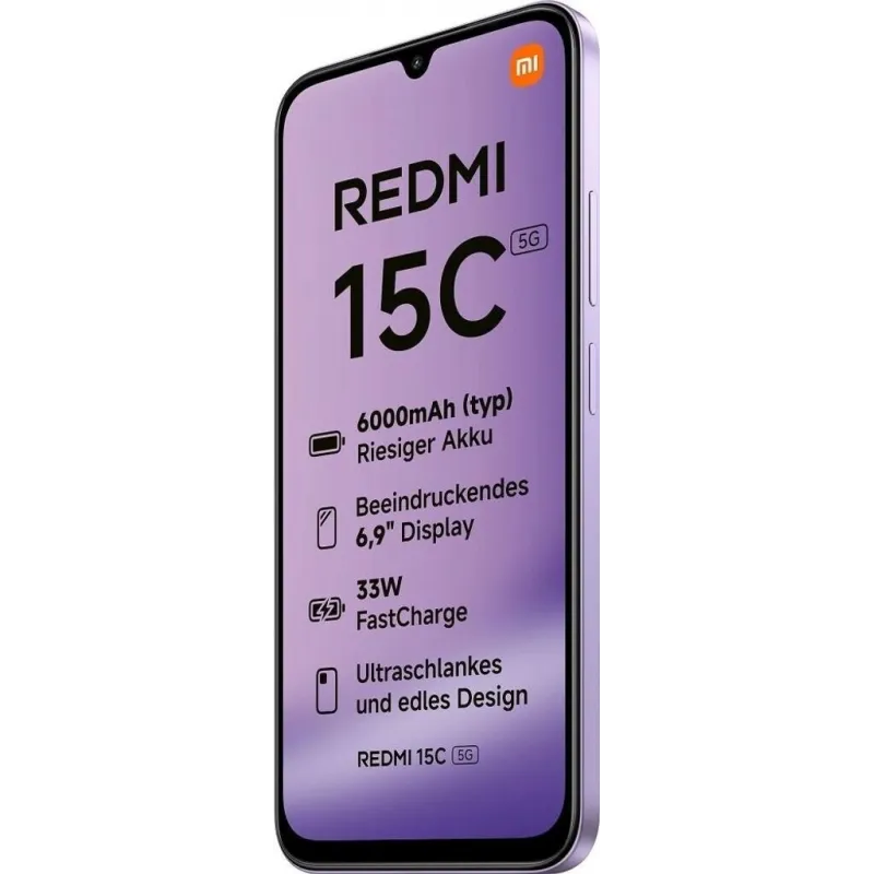 Móvil Xiaomi Redmi 15C 5G 4GB/256GB Violeta libre con pantalla de 6.9", 120 Hz, cámara 50 MP, 6000 mAh, NFC y USB-C. Smartphone ideal para gama de entrada.