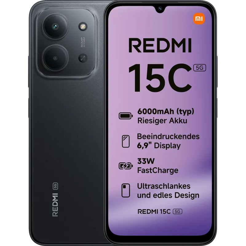 Smartphone Xiaomi Redmi 4/128GB Negro con pantalla 6.9 pulgadas, batería 6000 mAh, cámara de 50 MP y procesador MediaTek Dimensity 6300