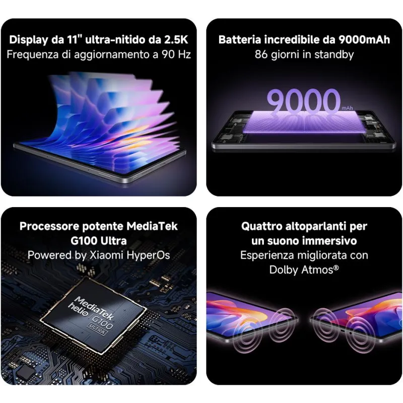 La Tablet Xiaomi Redmi Pad 2 11" 4/128GB Gris Grafito no solo ofrece una excelente calidad de imagen, sino también un sonido envolvente gracias a su sistema Dolby Atmos con cuatro altavoces integrados. Esta combinación permite disfrutar de una experiencia audiovisual inmersiva, perfecta para películas, juegos o videollamadas. El audio potente y claro complementa a la perfección su pantalla 2.5K 11 pulgadas, haciendo de esta tableta una opción ideal para el entretenimiento. Además, su conectividad Bluetooth 5.3 y Wi-Fi 5 garantizan una transmisión estable y rápida, completando así una experiencia multimedia de alto nivel.