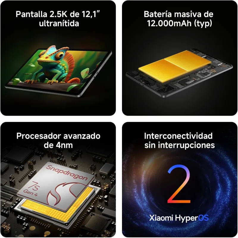 Beneficios clave: pantalla de 12,1 pulgadas, memoria RAM de 6 GB, almacenamiento de 128 GB, conectividad 5G (según variante), formato ideal para multitarea, tamaño cómodo para teletrabajo y estudio, fluidez en apps de ocio, diseño en color gris grafito, ecosistema Xiaomi, uso cómodo en casa y oficina, buen equilibrio entre tamaño y portabilidad