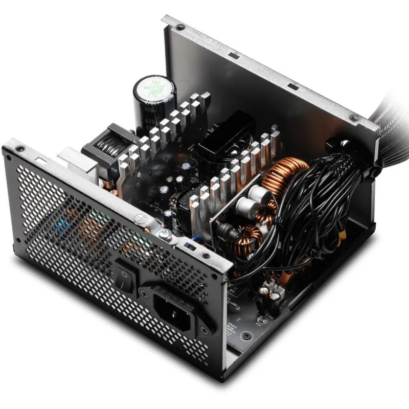 Dispone de un alimentador de energía para tarjeta madre de 24 pines ATX, cinco conectores de energía SATA, y dos conectores de poder PCI Express (6 + 2 pin), facilitando la conexión de múltiples dispositivos y tarjetas gráficas. El conector de alimentación EPS (4+4 pines) y el conector de potencia ATX (24 pines) aseguran compatibilidad con una amplia gama de placas base.
