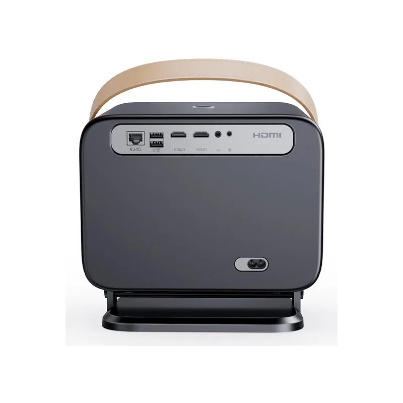 GIMBAL DESMONTABLE Y ASA PORTÁTIL: El gimbal giratorio ajusta fácilmente el ángulo de proyección, y el asa portátil transporta convenientemente el proyector.