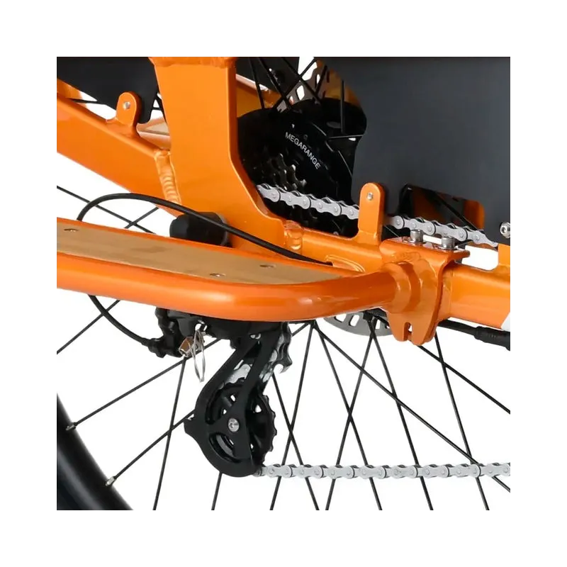 Es una bicicleta eléctrica de carga orientada a movilidad urbana y transporte personal.