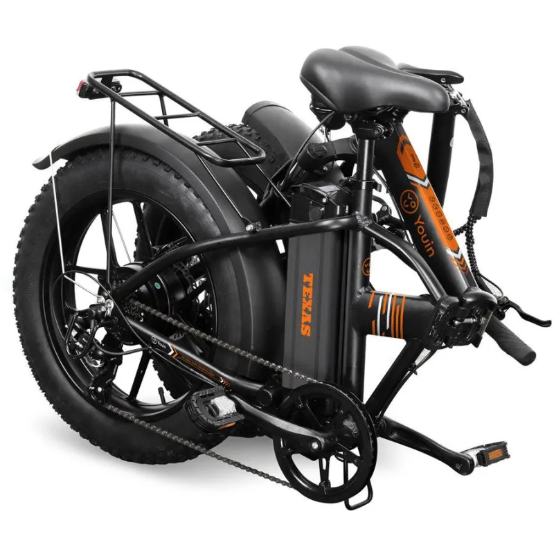 VERSATILIDAD Y ESTILO PARA TODOS LOS USUARIOS: Con un diseño moderno en negro y naranja y un tamaño de rueda de 20 pulgadas, la Bicicleta eléctrica Youin Texas II se adapta a usuarios de cualquier género y edad. Su portaequipaje trasero añade funcionalidad, permitiendo transportar objetos personales o pequeñas cargas con facilidad. La pata de cabra integrada facilita el estacionamiento, mientras que el peso total de 27 kg garantiza un equilibrio entre robustez y maniobrabilidad. Con una garantía de 3 años, esta bicicleta eléctrica ofrece tranquilidad y respaldo a largo plazo. Es una opción ideal para quienes buscan una bicicleta eléctrica versátil, potente y con un diseño atractivo, que se adapte tanto a la rutina diaria como a las escapadas de ocio.