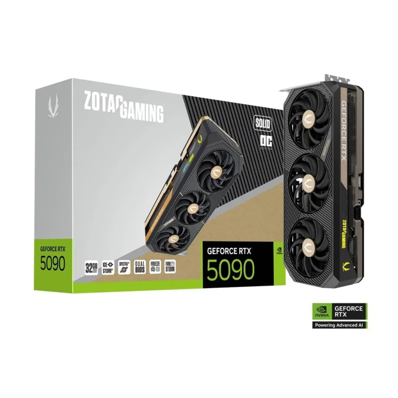 Tarjeta Gráfica Zotac GAMING GeForce RTX 5090 SOLID OC con memoria GDDR7 32 GB, frecuencia de 2422 MHz y tecnología IceStorm 3.0
