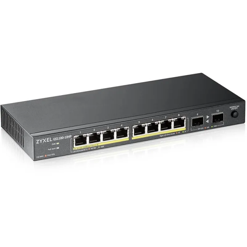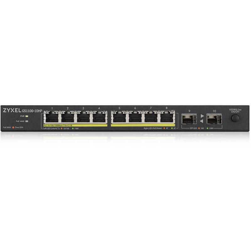 Switch Zyxel GS1100-10HP v2 PoE 8 Puertos Ethernet + 2 Puertos SFP con velocidad de Transferenciad de 1000 Mbit/s