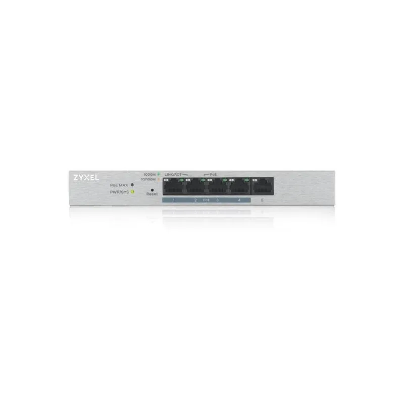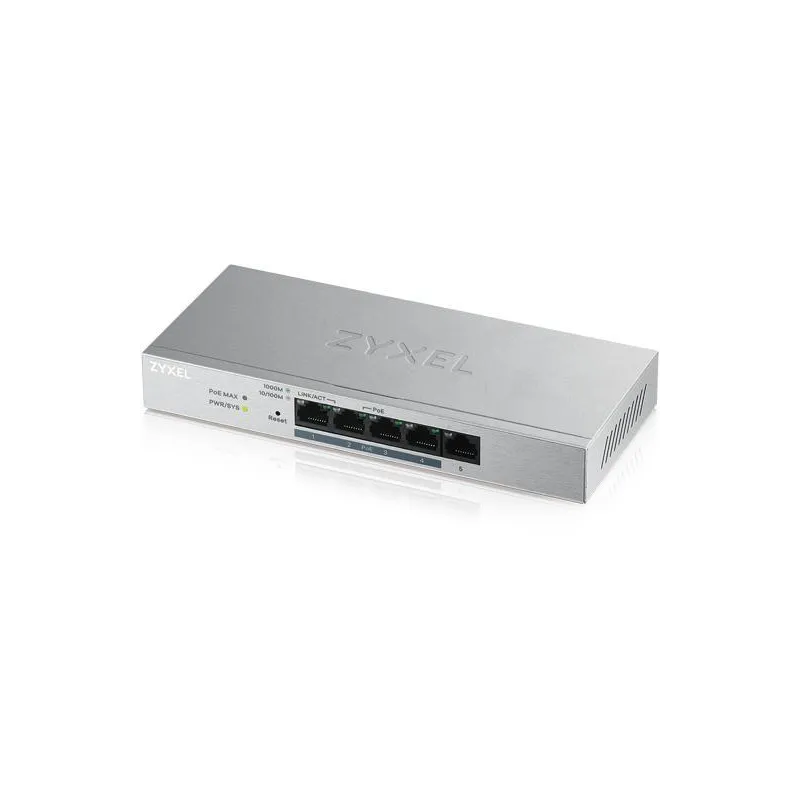 Switch Zyxel GS1200-5HP v2 Switch gestionado de 5 puertos Gigabit con PoE+ QoS VLAN y 10 Gbps de capacidad, plata