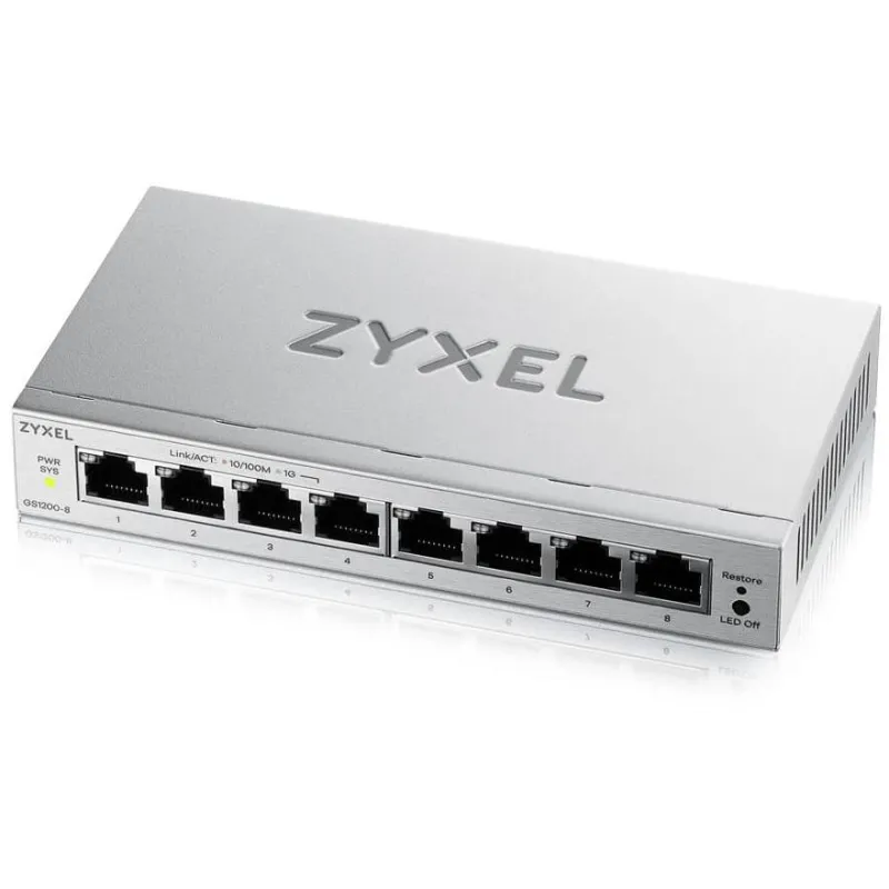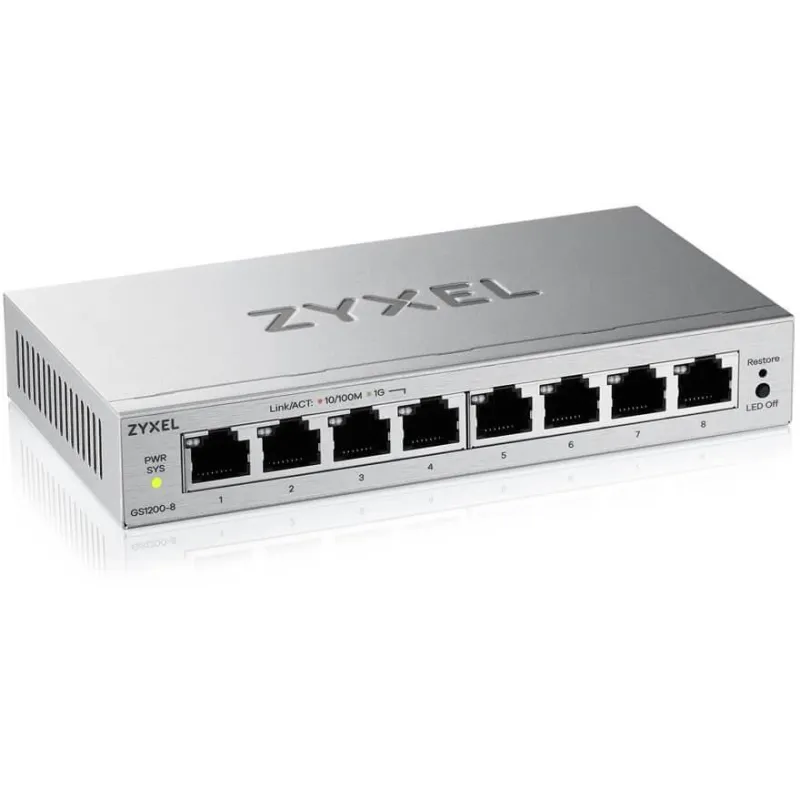 Dispositivo de redes: Zyxel GS1200-8V3 (GS1200-8V3-EU0101F) switch gestionado L2 Gigabit 8 puertos.