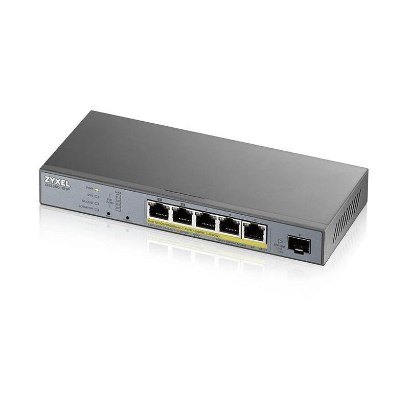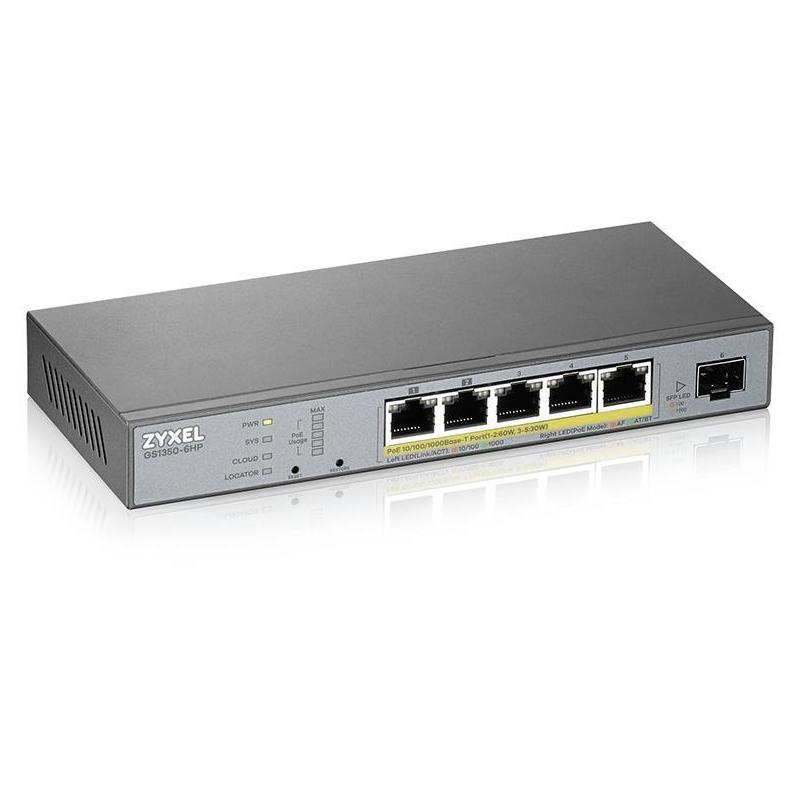 Switch Zyxel GS1350-6HP-EU0101F Switch gestionado L2 con 5 puertos Gigabit PoE 1 ranura SFP 60W PoE, VLAN seguridad avanzada