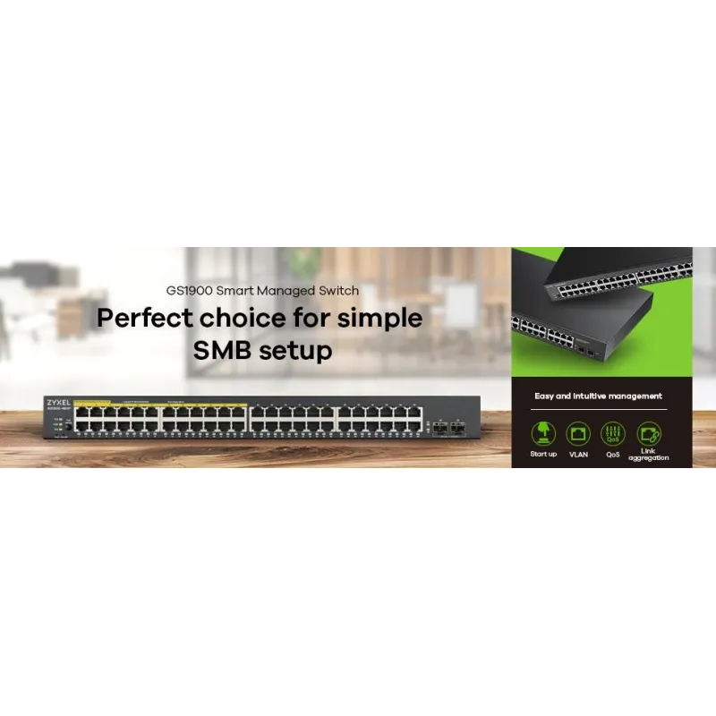 Switch Zyxel GS1900-48-EU0102F Gestionado L2 con 48 Puertos Gigabit Ethernet, velocidad de Transferencia de hasta 1000 Mbit/s, color Negro
