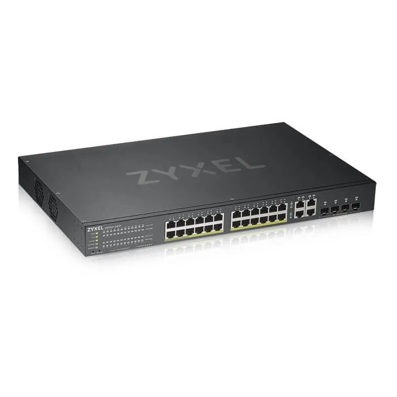 Switch Zyxel GS1920-24HP v2 PoE Gestionado con Capa L2 24 Puertos Gigabit Ethernet + 4 Puertos SFP, velocidad de Transferencia de hasta 1000 Mbit/s, color Negro