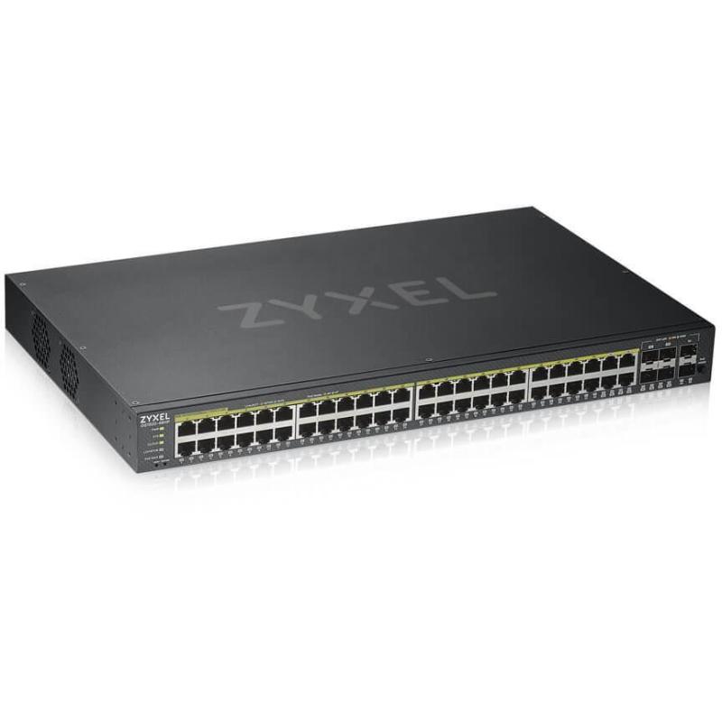 Switch Zyxel GS1920-48HP v2 PoE Gestionado con 44 Puertos Gigabit Ethernet + 2 SFP, velocidad de Transferencia de hasta 1000 Mbit/s, color Negro