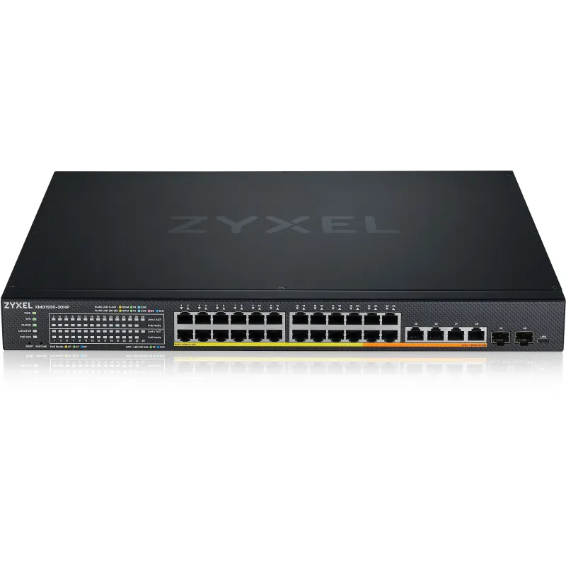 Switch Zyxel XMG1930-30HP-ZZ0101F Gestionado L3 24 Puertos + 4 Puertos 10GbE + PoE + 2 Puertos SFP+, velocidad de hasta 10000 Mbit/s color Negro